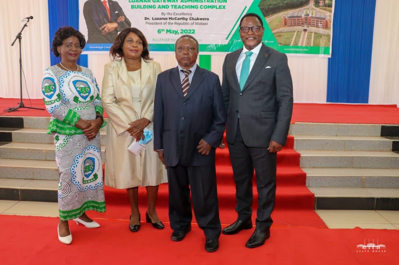 President Lazarus Chakwera on Friday, May 6, 2022 presided over the official opening of Administration Building and Teaching facility at Lilongwe University of Agriculture and Natural Resources ( LUANAR), Bunda Campus in Lilongwe.